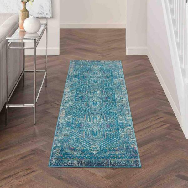 Blue 2 ft. x 6 ft. Runner Polypropylene Area Rug