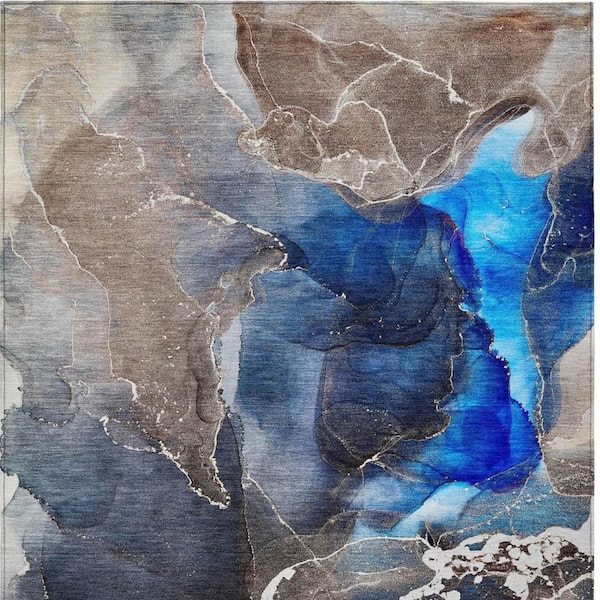Blue 3 ft. x 5 ft. Abstract Indoor / Outdoor Area Rug