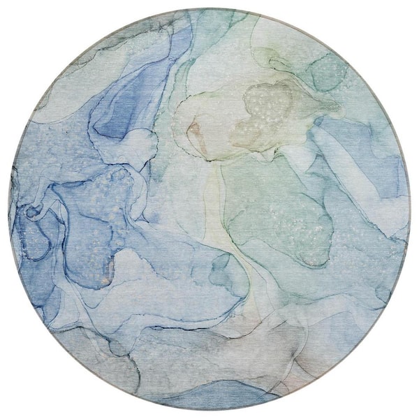Blue 8 ft. Round Abstract Indoor / Outdoor Area Rug