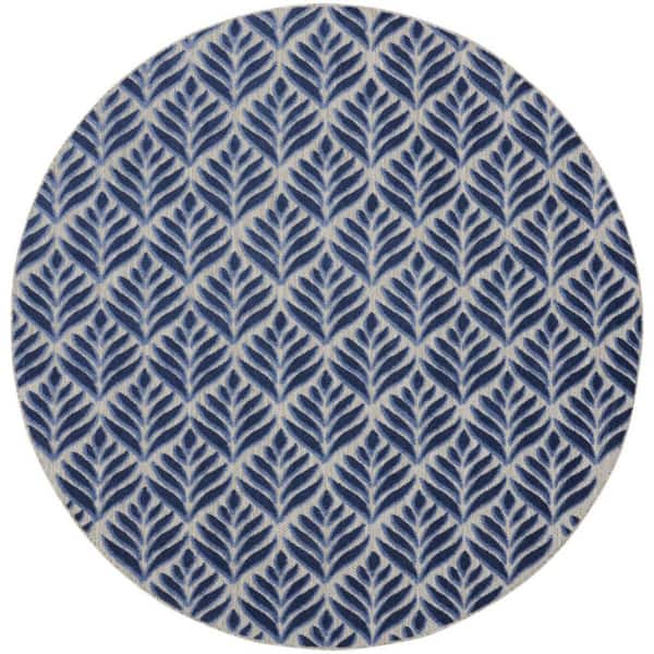 Blue 8 ft. Round Loomed Floral Polypropylene Round Indoor/Outdoor Area Rug