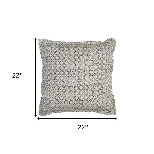 Blue, Beige Solid Polyester 22 in. x 22 in. Throw Pillow