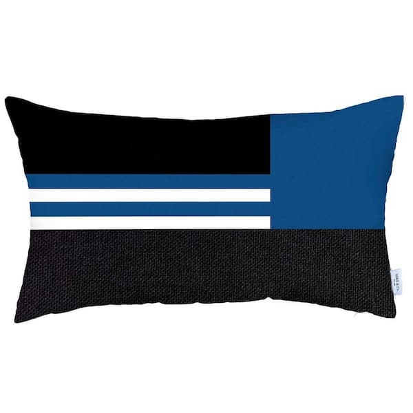 Blue, Black Geometric Polyester 12 in. x 20 in. Throw Pillow