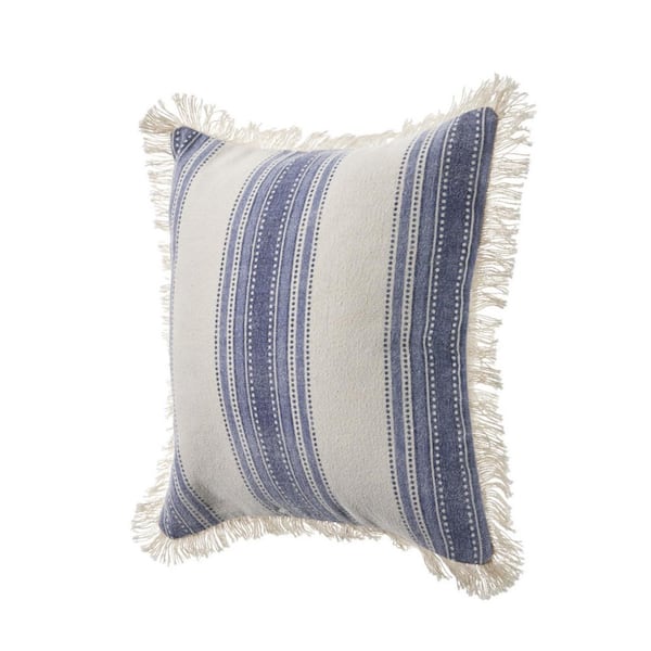 Blue, Cream Striped Polyester 18 in. x 18 in. Throw Pillow (Set of 2)