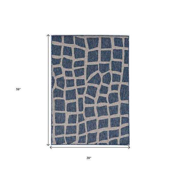 Blue, Gray 3 ft. x 5 ft. Woven Polypropylene Rectangle Indoor/Outdoor Area Rug