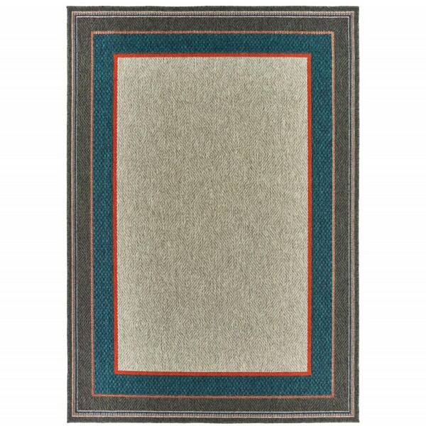 Blue, Gray 8 ft. x 10 ft. Loomed Border Polypropylene Rectangle Indoor/Outdoor Area Rug