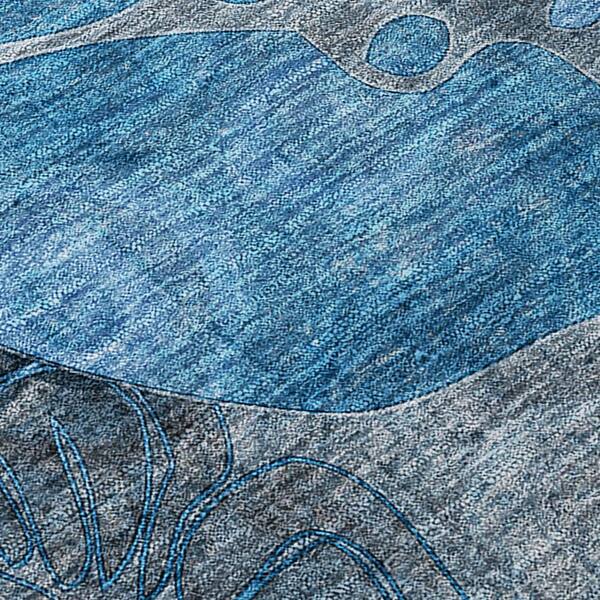 Blue, Gray 8 ft. x 8 ft. Woven Abstract Polyester Round Indoor / Outdoor Area Rug