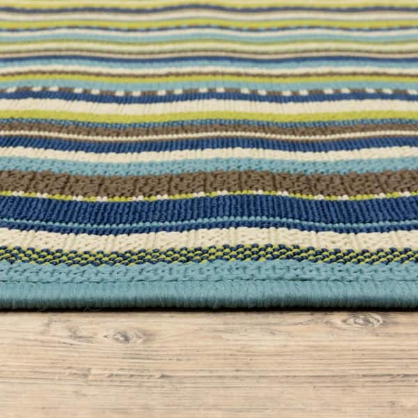 Blue, Green 2 ft. x 4 ft. Loomed Polypropylene Rectangle Indoor/Outdoor Area Rug