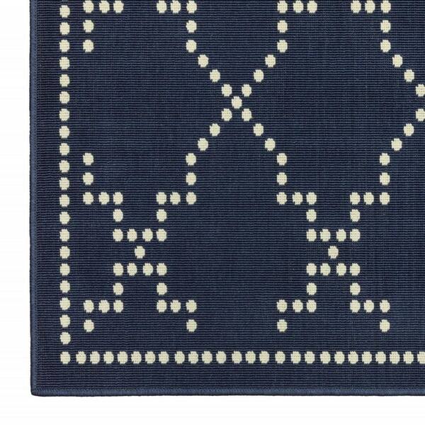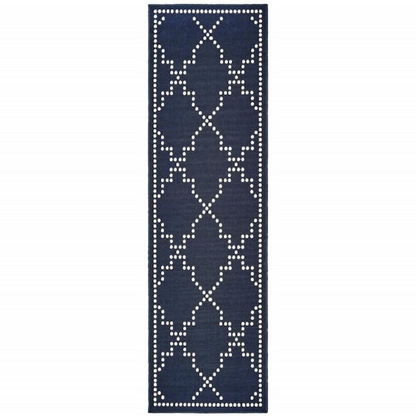 Blue, Ivory 2 X 8 ft. Loomed Geometric Polypropylene Rectangle Indoor/Outdoor Area Rug