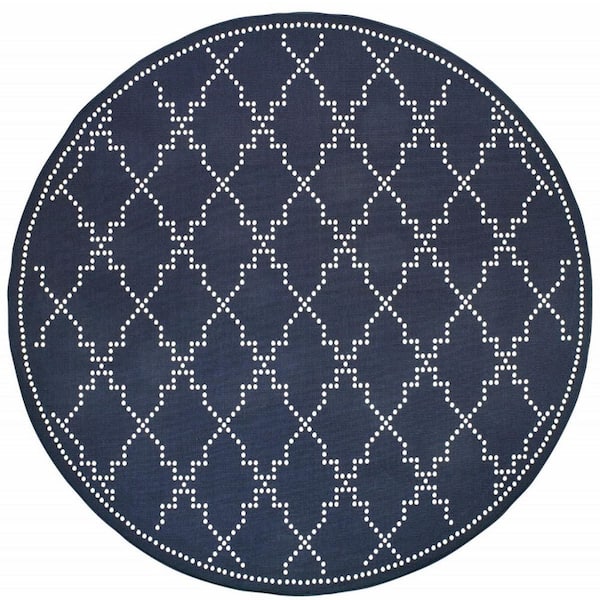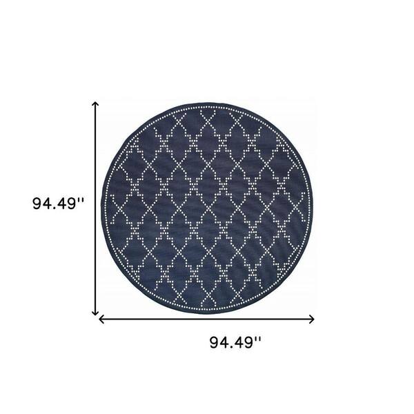 Blue, Ivory 8 ft. x 8 ft. Loomed Geometric Polypropylene Round Indoor/Outdoor Area Rug