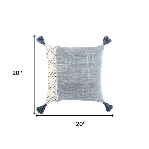 Blue, Ivory Solid Polyester 20 in. x 20 in. Throw Pillow
