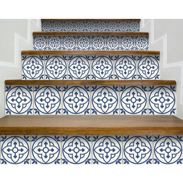Blue/White 5 in. x 5 in. Vinyl Peel and Stick Removable Tile Stickers (4.08sq.ft./pack)