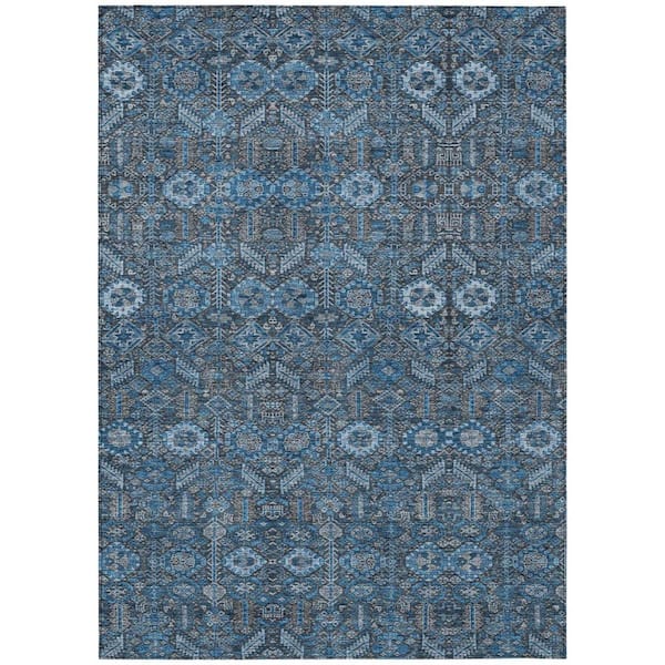 Blue and Black 8 ft. x 10 ft. Woven Floral Rectangle Indoor/Outdoor Area Rug