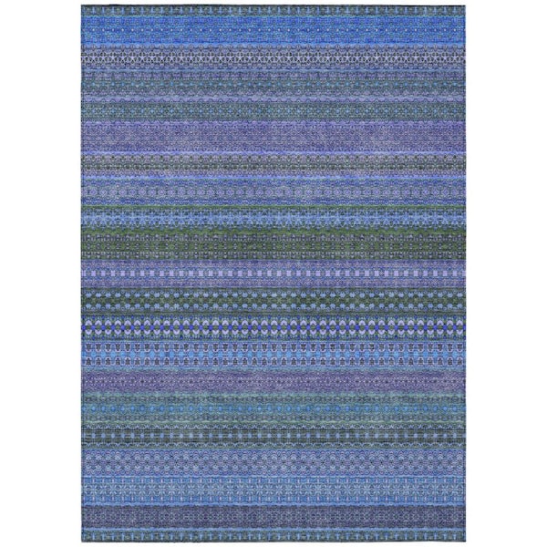 Blue and Green 10 ft. x 14 ft. Woven Striped Polyester Rectangle Indoor/Outdoor Area Rug