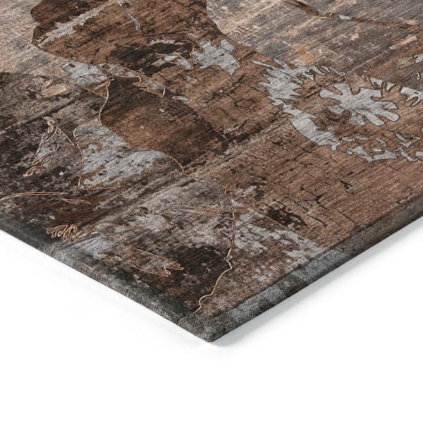 Brown, Gray 2 ft. x 8 ft. Woven Abstract Polyester Runner Indoor / Outdoor Area Rug