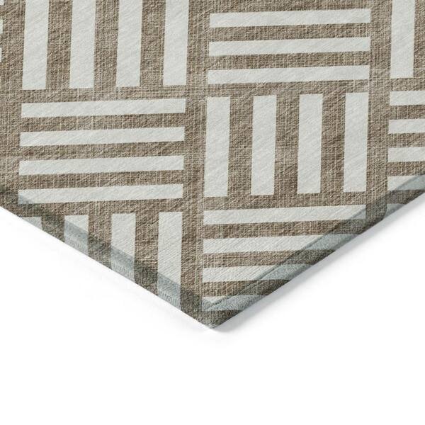 Brown, Ivory 5 ft. x 8 ft. Woven Geometric Polyester Rectangle Indoor/Outdoor Area Rug