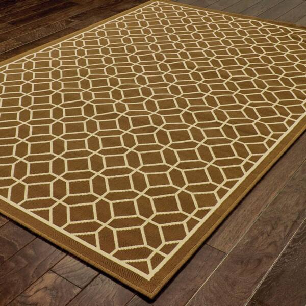 Brown, Ivory 9 ft. x 13 ft. Loomed Geometric Polypropylene Rectangle Indoor/Outdoor Area Rug