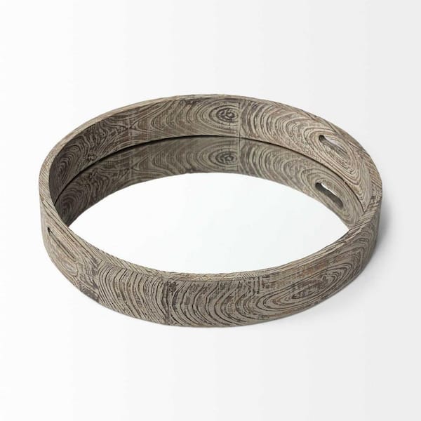 Brown Round Wood 28 in. Decorative Tray