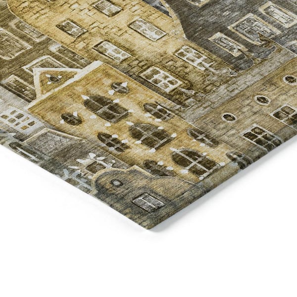 Brown, Taupe, Gold 3 ft. x 5 ft. Woven Geometric Polyester Rectangle Indoor / Outdoor Area Rug