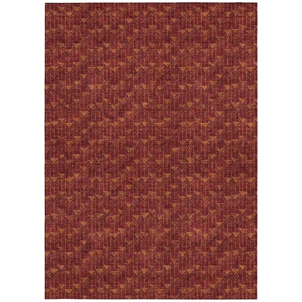 Burgundy 3 ft. x 5 ft. Geometric Indoor / Outdoor Area Rug
