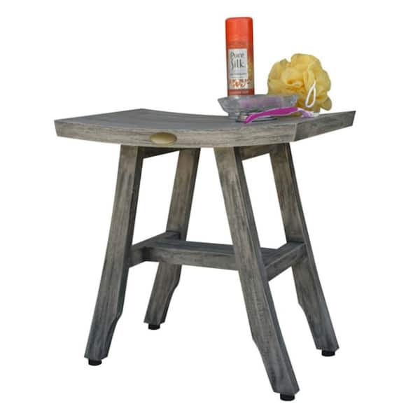 Caroline Compact Contemporary Teak Shower Stool in Gray Finish ( 18 in X 13 in X 18 in )