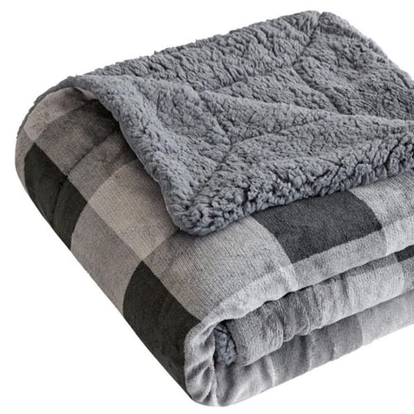 Charcoal/ Gray Plaid Velvet Throw Blanket