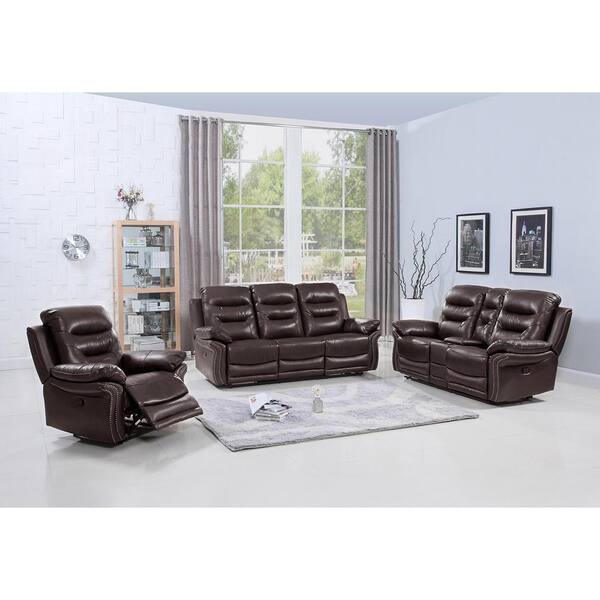 Charlie 206 in. Brown Faux Leather 3-Seater Loveseats
