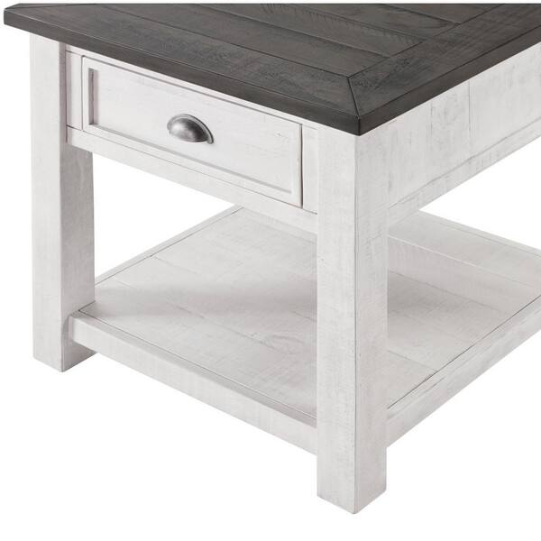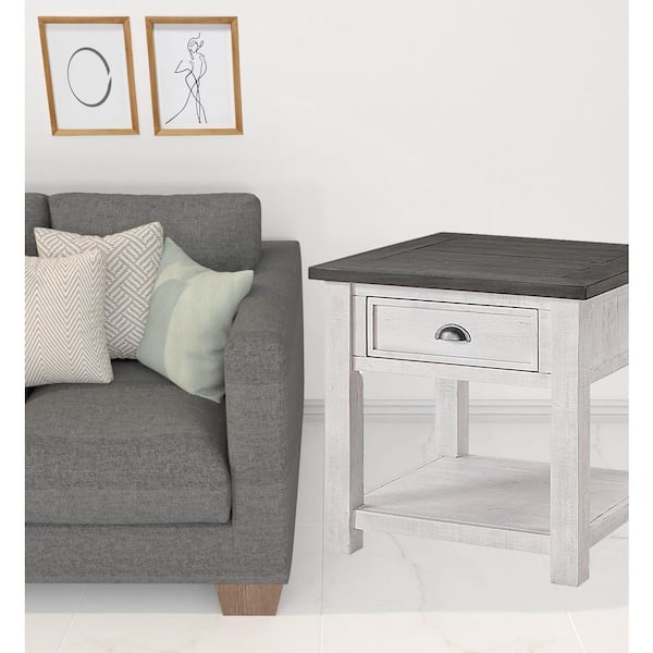 Charlie 24 in. Gray and White Square Wood End Table with Drawers