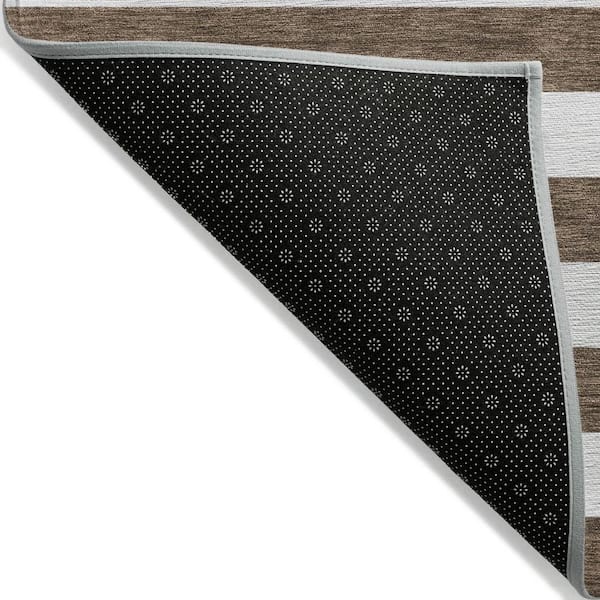 Chocolate 8 ft. Round Woven Striped Polyester Round Indoor/Outdoor Area Rug