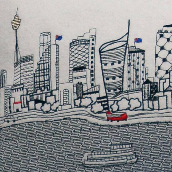 • Embroidered Pittsburgh cityscape on front, solid color on back