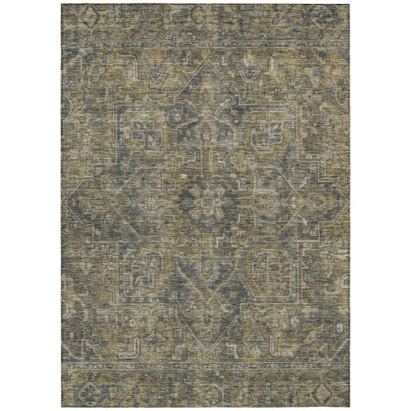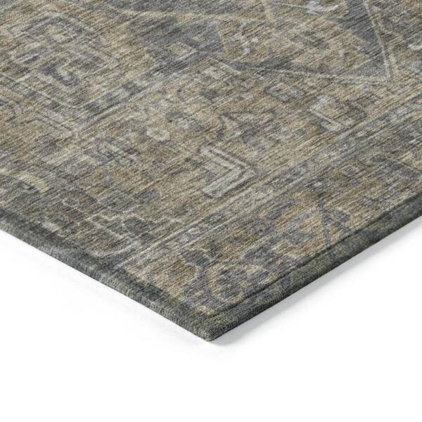 Dark Moss Green and Gray 3 ft. x 5 ft. Woven Oriental Rectangle Indoor/Outdoor Area Rug