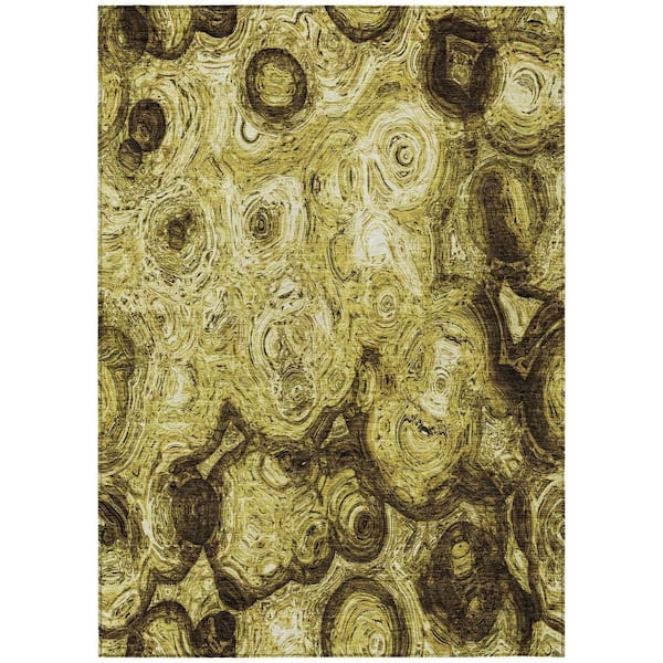 Gold, Wheat, Chocolate 10 ft. x 14 ft. Woven Abstract Polyester Rectangle Indoor / Outdoor Area Rug