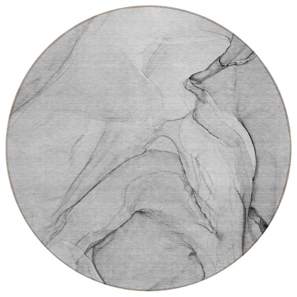 Gray 8 ft. Round Abstract Indoor / Outdoor Area Rug