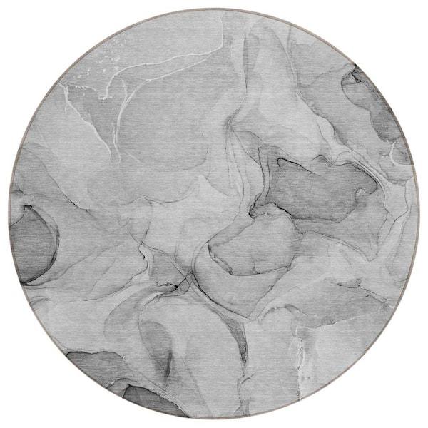 Gray 8 ft. Round Abstract Indoor / Outdoor Area Rug
