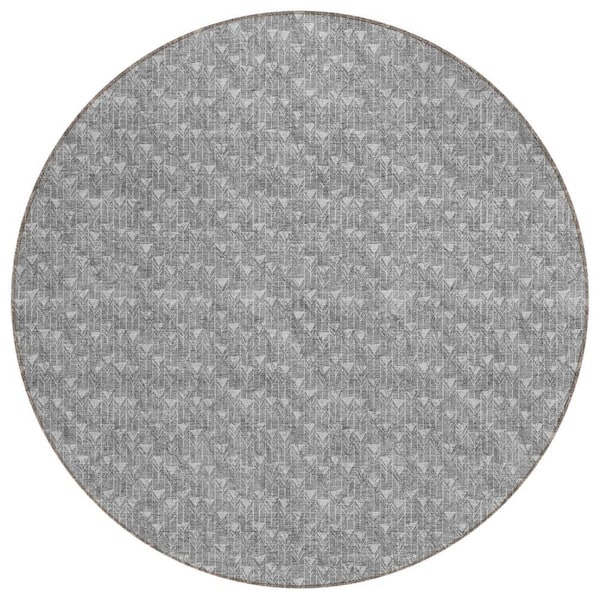 Gray 8 ft. Round Geometric Indoor / Outdoor Area Rug