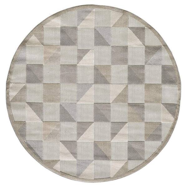 Gray 8 ft. Round Woven Polypropylene Round Indoor/Outdoor Area Rug