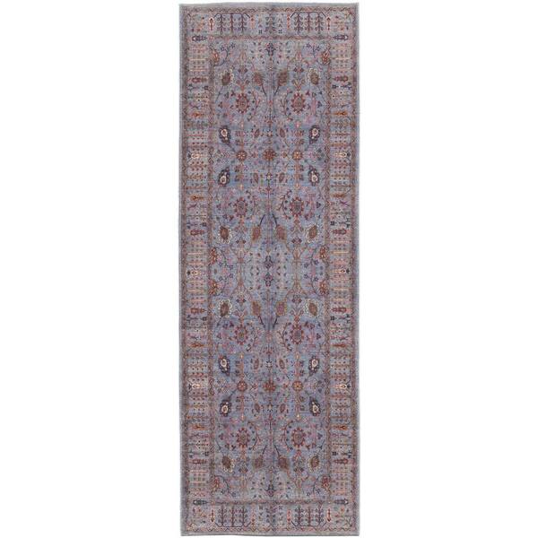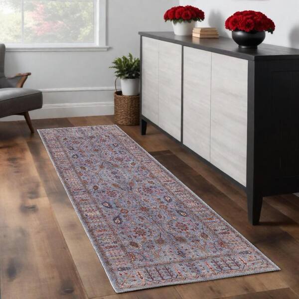 Gray Blue and Red 3 ft. x 8 ft. Floral Area Rug