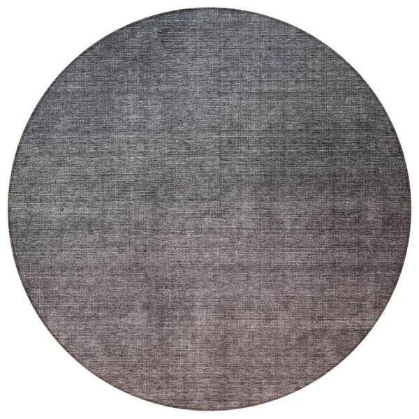 Gray, Charcoal, Brown 8 Round ft. Woven Abstract Polyester Round Indoor / Outdoor Area Rug