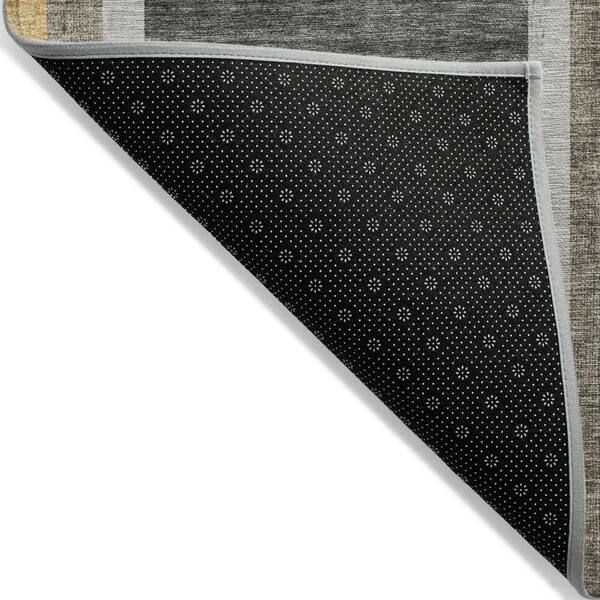 Gray, Green, Gold 2 ft. x 8 ft. Woven Abstract Polyester Runner Indoor / Outdoor Area Rug