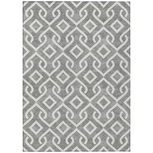 Gray, Ivory 3 ft. x 5 ft. Woven Geometric Polyester Rectangle Indoor/Outdoor Area Rug