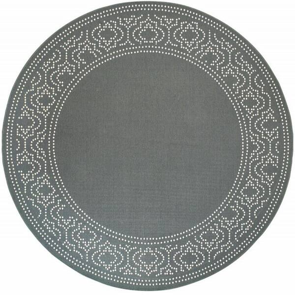 Gray, Ivory 8 ft. x 8 ft. Loomed Border Polypropylene Round Indoor/Outdoor Area Rug