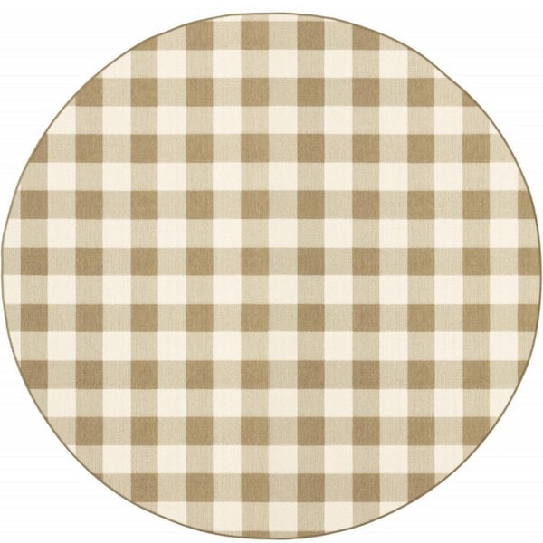 Gray, Ivory 8 ft. x 8 ft. Loomed Geometric Polypropylene Round Indoor/Outdoor Area Rug