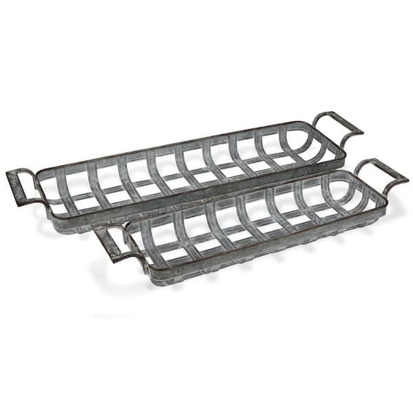 Gray Rectangle Metal 28.75 in. Decorative Tray Set of 2