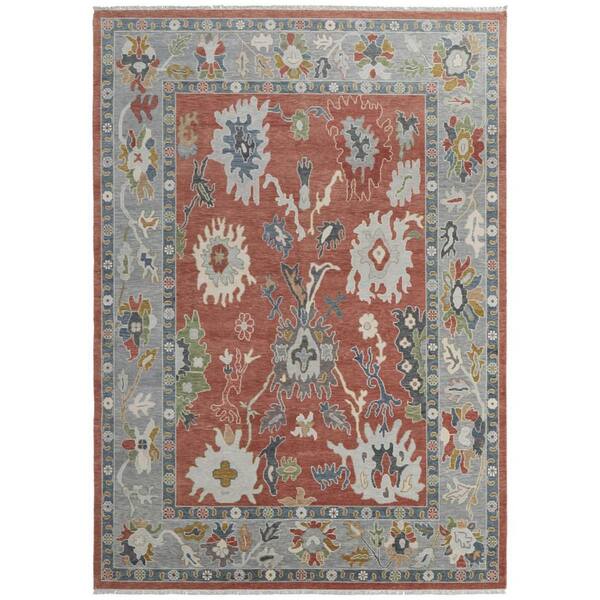 Gray, Red, Ivory Floral 9 ft. x 13 ft. Area Rug