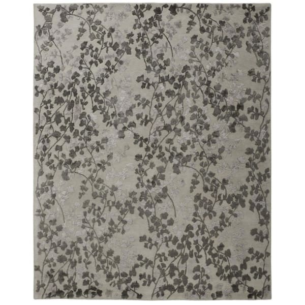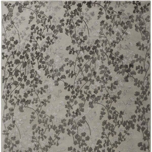 Gray, Silver 5 ft. x 8 ft. Floral Area Rug