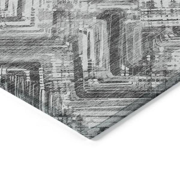 Gray, Silver, Ivory 3 ft. x 5 ft. Woven Geometric Polyester Rectangle Indoor/Outdoor Area Rug