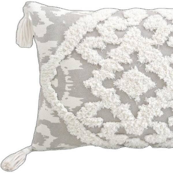 Gray, White Damask Polyester 13 in. x 18 in. Throw Pillow
