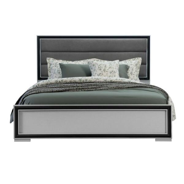 Gray Wood Frame Queen Panel Bed with Upholstered;Tufted