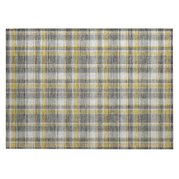 Gray Yellow and White 2 ft. x 3 ft. Woven Plaid Rectangle Indoor/Outdoor Area Rug