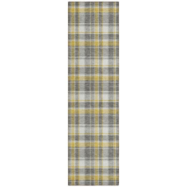 Gray Yellow and White 2 ft. x 8 ft. Woven Plaid Runner Indoor/Outdoor Area Rug