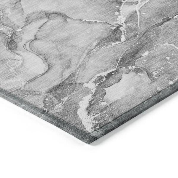 Gray and Ivory 9 ft. x 12 ft. Woven Abstract Polyester Rectangle Indoor/Outdoor Area Rug
